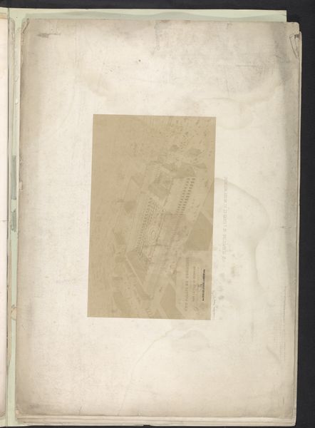 This is a page from a scrapbook by Charles Percier, made with graphite and pen. It shows architectural drawings and prints, evoking a sense of classical order and meticulous planning. The composition is divided, the left featuring detailed architectural elevations and landscaping sketches, while the right remains mostly blank. Percier employs precise linework to define the structures, emphasizing symmetry and proportion. There’s an intriguing interplay between the detailed renderings and the open space, inviting us to consider the dialogue between the built environment and the void. Percier, known for his role in shaping the Empire style, showcases a fascination with classical forms, visible in the building's design. The scrapbook format reveals an intimate glimpse into the architect’s creative process, almost like a personal spatial laboratory. The blank space serves not just as an absence but as a potential, reflecting the ongoing dialectic between what is and what could be. It highlights the tension between the concrete and the conceptual.