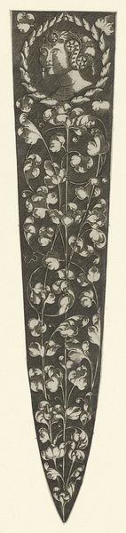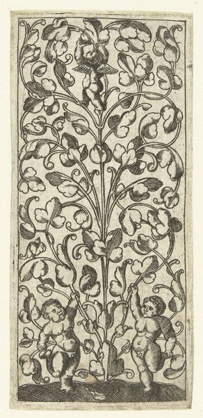 Curator: This striking image is entitled "Kaarsrechte stengel", dating back to between 1500 and 1600, made by an anonymous artist. The medium is an engraving. Editor: Immediately, the stark black lines give it such a firm, assertive quality despite its delicate botanical subject. It’s like a statement on nature. Curator: Yes, the linework is characteristic of the Northern Renaissance, focusing on detail and pattern. I think these weren't just decorative; plants often had symbolic meaning in this era. It’s almost as if it’s a secret language that was being shared. Editor: Interesting… almost a clandestine visual discourse of the time! One must consider what this supposed symbolism really entailed…perhaps some level of political rebellion. Look how the vertical line defies gravity as we interpret the direction upwards. It becomes charged with aspirations. Curator: Possibly so. This insistence on linear perspective adds to the dynamic upward sweep. What reads clearly to our modern eyes—almost geometrically—may have alluded to something else entirely. Editor: Right, but this ‘Kaarsrechte stengel’ isn't merely decorative in a neutral sense. It's engaging with social concepts and anxieties of the era. To the common person, what power was hidden in the stem's upward mobility or nature's visual language that would change history? I am convinced, if read politically, its decorative impact challenges its pure aesthetic nature. Curator: That makes me consider the potential alchemical or religious symbolism too… that continuous vertical could signify spiritual ascent, in addition to the political subtext. Or something entirely practical like design elements, since this piece may have functioned as a pattern for artisans. Editor: Or the rise in a new socioeconomic system! The very means of print making was innovative in making distribution of symbols accessible. How did such images democratize symbolism at the time, as well as perhaps control and commodify nature in an artful way? Curator: Whether intended as purely ornamental, propagandistic, or with layers of hidden allegory, this print definitely offers much food for thought about the complex relationship between nature, power, and symbolism during the Renaissance. Editor: I couldn't agree more. It's amazing how a relatively simple image like this can ignite a discussion that touches on everything from social uprising, politics and secret languages to personal beliefs and innovation. A piece for today, even with such early roots!