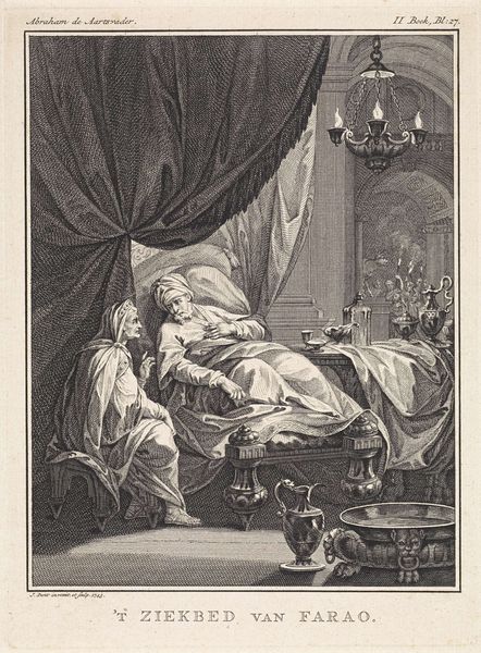 Editor: So, here we have Jan Saenredam's "Night", an engraving from 1595. I’m immediately struck by how it juxtaposes the deep slumber of the woman in the foreground with the implied drama of the scene behind her bed curtains. What’s your take on this piece? Curator: It’s fascinating, isn’t it? Placed in the social and cultural context of the Dutch Golden Age, engravings like this served a crucial role. Consider its distribution: prints democratized art, allowing wider access to imagery and ideas that would otherwise be confined to wealthy patrons. Editor: That's true; prints were an early form of mass media. But how does that relate to the image itself? Curator: Think about what this 'night' scene is presenting. We see medical practices – potentially a bloodletting. These intimate, domestic scenes are placed on public view through the print medium. How might viewers in 1595 have perceived the medical details depicted and this peek into private life? Editor: Interesting! So, it's about the power of making the private public. Almost a commentary on social accessibility through art itself. Did the public believe images and propaganda at that time? Curator: Exactly. And consider the presence of symbols and moral messages imbedded in daily life. Were these medical treatments effective, or are we also viewing superstition presented to be scrutinized by those viewing? Does art play a role in furthering beliefs and power structures within social structures, too? Editor: I hadn’t thought about it that way. Seeing the engraving as more than just a scene, but also a reflection on medical belief and potential power. Thanks, that was really helpful to me. Curator: My pleasure! Considering art’s function within the public sphere gives new perspectives on these historical images.