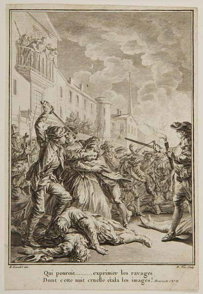 Curator: In Rembrandt van Rijn's etching, "The Stoning of Saint Stephen," we witness a moment of intense brutality, rendered in miniature at roughly 9.6 x 8.5 centimeters. Editor: The first thing that strikes me is the raw energy. It feels chaotic, the figures are compacted, and the overall effect is quite disturbing. Curator: Indeed. Rembrandt's choice to depict this event through etching is significant, allowing for a dynamic interplay of light and shadow, emphasizing the violence inherent in this martyrdom narrative. Consider the way the saint's youthful features contrast with the hardened expressions of his tormentors. Editor: And isn't there a way to read the figures' faces and garments as a form of commentary on power structures of Rembrandt's time? I am thinking about the power dynamics inherent in the persecution of marginalized groups. Curator: That’s astute; viewing this work through a lens of social justice illuminates the historical realities of oppression and resilience that art can reveal. Editor: This work serves as a stark reminder of the consequences of religious and ideological intolerance. Curator: And how art can function as both a historical record and a call to confront injustice.