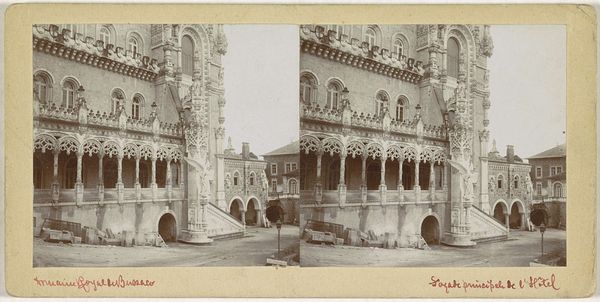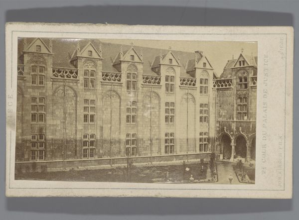 Editor: So, here we have Médéric Mieusement's "Exterior of the Palace of Justice in Rouen," an albumen print from around 1880 to 1900. It's incredibly detailed – almost overwhelmingly so. What do you see in this photograph that I might be missing? Curator: I see a whisper of time itself. This isn't just a picture of a building; it’s a conversation with history, frozen in sepia tones. Notice how the light dances across the ornate façade. It feels almost like the building is breathing, doesn’t it? Like it's a stage set, waiting for the players to arrive. Editor: It does have a theatrical quality! Like a still from a historical drama. The gothic details are really pronounced. Curator: Precisely! Mieusement, I think, wasn't merely documenting architecture; he was capturing the spirit of an era. He knew how to use light and shadow to evoke a sense of drama. That almost tangible weight of the past... Have you noticed how the sky is totally devoid of clouds, creating an incredible contrast? Editor: Now that you mention it, the empty sky amplifies the intricate details of the building. Makes it seem even more imposing. It's very effective. Curator: And what does that imposive presence tell you about the role of Justice at the time? Think about it… Editor: I guess it conveys that the law and the state were powerful, immutable forces...almost unapproachable? Thanks for pointing all this out, I am definetely thinking differently about this work! Curator: Absolutely, the silent grandeur speaks volumes! It is these frozen moments that makes it unique. Now it is you who helped me reflect on the relationship between power and history that I hadn't considered.