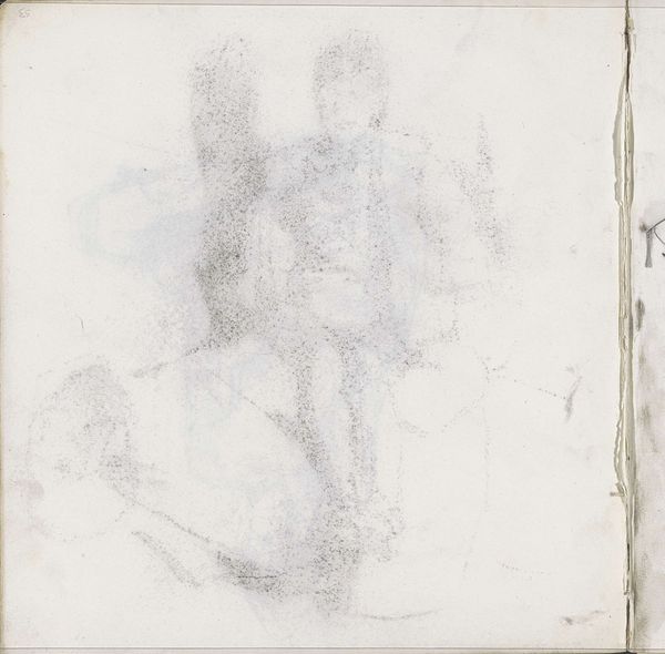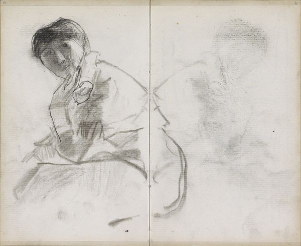 Curator: Isaac Israels created this intriguing pencil sketch, “Man met geheven rechterarm,” sometime between 1875 and 1934. It's currently held at the Rijksmuseum. My first impression is its incredible lightness— almost ephemeral. Editor: Yes, that’s immediately striking. It feels more like a fleeting thought captured on paper than a formal portrait. You can almost see the graphite dust it's so minimal. It gives a sense of the artist at work, experimenting with the medium. Curator: And who that man might be... The raised right arm! What statement might the sitter be trying to project through this posture? Was this posture referencing the working class during this era? Was it trying to project strength or even making some political statement in light of historical narratives and their construction in the Netherlands at this time? Editor: Possibly, or perhaps it's a mundane gesture, elevated by the act of representation. I'm drawn to the labor implicit in even this brief sketch. The choice of pencil, the paper, the act of repeatedly applying graphite to the surface – these elements highlight the artist's process of translating perception into tangible form. And to question what work he was possibly involved with or being prevented from by his sitter in this pose. Curator: Exactly, but to disregard the impact of societal power structures would ignore how they were influencing perceptions during the turn of the 20th century, for both the artist, subject and contemporary viewers like us today. This poses further inquiries. How might this sketch address themes of gender, class, or race as constructed through visual language? Is this an example of social commentary through informal representation, thus adding to or confronting artistic conventions in portraying masculinity at this moment in Dutch art history? Editor: I'd argue we can't disregard the actual making; even this sketchy aesthetic signifies particular choices relating to production, a conscious turning away from academic precision. You notice how little the image has rendered beyond line and shape in light pencil work, making one curious how this was originally viewed from an artistic perspective as compared to how the general Dutch population felt at the time it was produced, and now. It provokes examination around art’s evolving function as a tangible document or object throughout varying social eras.. Curator: Perhaps in appreciating the interplay of material and social context we better interpret both Isaac Israels and his subject here within these artistic realms. The gesture captured, fleeting or potent, might offer deeper resonances about representation itself within history's evolving dialogues concerning society’s dynamics during 1875 and 1934 and even up to our contemporary context. Editor: Agreed, situating its creation into its societal period brings crucial awareness and invites reflections of art historical conventions both passed, ongoing, and possible innovations in art production across various demographics.