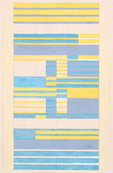 Curator: This is Anni Albers' "Design for a Silk Tapestry" currently held at the Harvard Art Museums. Editor: It strikes me as a musical score, with these horizontal bars and vertical blocks like notes on a page. Curator: Albers, a Bauhaus weaver, saw weaving as a form of visual language. Her work elevated textiles from craft to high art. Editor: The geometric patterns, though abstract, evoke ancient textiles, almost like glyphs or a forgotten alphabet. The symbolism feels deeply embedded. Curator: Absolutely. Albers explored the cultural significance of textiles, connecting modern design with ancient traditions, challenging the hierarchy of artistic disciplines. Editor: I see echoes of Incan textiles, or perhaps even early computer punch cards – a strange premonition of digital language rendered in thread. Curator: Fascinating how you draw those connections. It emphasizes how design, especially when rooted in material culture, always speaks to broader historical and technological contexts. Editor: Yes, and it highlights how symbols and visual motifs can resonate across vast stretches of time, carrying cultural memories forward. Curator: It’s a testament to Albers' vision that her designs continue to spark such diverse interpretations. Editor: Indeed, a visual score that continues to be reinterpreted.