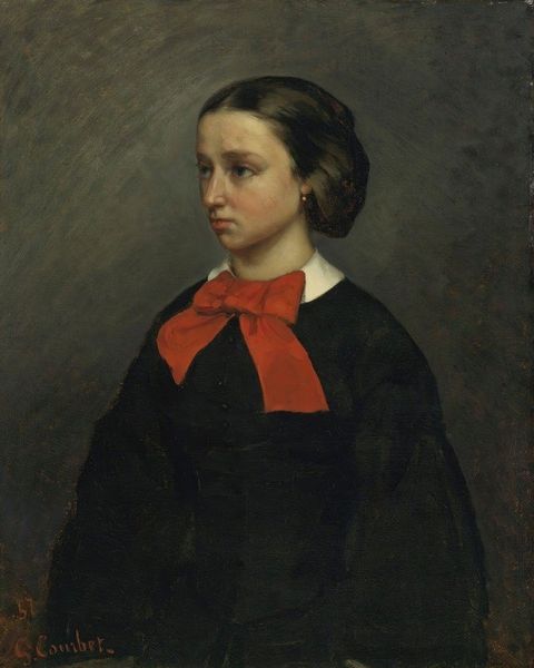 Edgar Degas created this painting of a Young Woman in Black using oil on paper, likely in the late 19th century. The composition is immediately striking for its stark contrast and asymmetrical balance. Notice the somber black dress of the subject, which dominates the lower half of the painting, offset by a lighter background that accentuates the figure's upper body and face. Degas plays with contrasts, setting the smooth finish of the face against the roughness of the background and dress. The gaze of the young woman evokes a sense of melancholy and introspection. The asymmetry of the backdrop destabilizes any fixed meaning, pushing the viewer to consider the psychological depth of the figure rather than a conventional portrait. Degas masterfully engages with the formal qualities of the artwork, transforming a portrait into a study of emotion and identity, challenging our conventional understanding of representation.