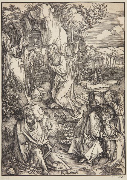 This is Master LCz's, "The Temptation of Christ," made sometime between 1425 and 1540, and it's an engraving, meaning the image is incised into a metal plate, inked, and then printed onto paper. Think about the labor involved in creating the incredibly fine lines that define the forms in this print. The engraver would have used a tool called a burin to carve the image into the metal, a process requiring immense skill and patience. The stark contrast between light and shadow, achieved through the density and direction of the engraved lines, gives the scene its dramatic intensity. The artist's mastery of line work allows for a rich depiction of textures, from the folds of Christ's robes to the grotesque details of the devil's figure. While the subject matter is religious, the print itself is a product of a burgeoning print market, driven by trade and commerce. This work reflects both the spiritual and the material conditions of its time, challenging any simple separation between art and craft.
