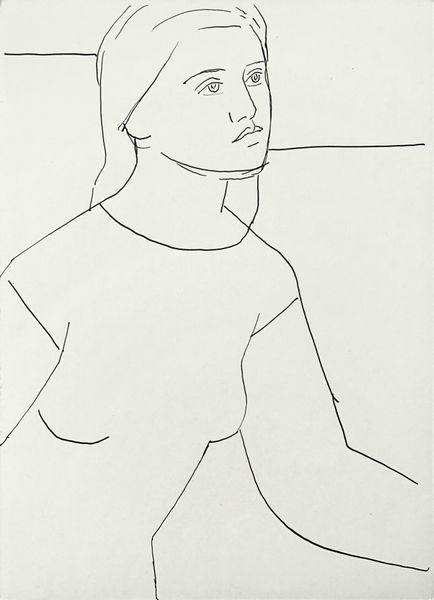 Editor: Here we have "Female Image," a 1975 ink drawing on paper by Hryhorii Havrylenko. It strikes me as so simple, almost childlike in its execution, yet the subject's gaze feels quite direct and self-assured. What can you tell me about the way this work communicates its message? Curator: Indeed. Notice how Havrylenko uses line, primarily. Observe the economy of means; each stroke contributes to the overall form. Consider the interplay between positive and negative space. The absence of shading flattens the image, focusing our attention on the contours themselves and how they define the subject's presence. Editor: It’s interesting you say that. Is the flatness a conscious choice, do you think, or a reflection of the artist’s technical ability? Curator: Ah, an astute question. Look closely at the variations in line weight. A deliberate evenness prevails, suggesting a focused reduction rather than a limitation. This simplification, this strategic use of flatness, foregrounds the inherent qualities of line itself—its capacity for defining form, conveying expression, existing as pure visual information. The line becomes its own subject. Do you see the semiotic implications here? Editor: Yes, now I do. So the choice of medium, and even the sparseness of it, all contribute to how we perceive the subject. It really pushes you to look closely at the very basic elements of artmaking. Curator: Precisely. This portrait, in its starkness, prompts us to consider the power of essential forms. It is the barest language used to describe likeness, forcing a dialogue with perception. Editor: I appreciate how the discussion moved us to notice more deeply the intentional artistic choices that might initially seem minimal. Thank you for your perspective. Curator: It’s in the details where we understand an artist’s goals, always a rewarding endeavor.
