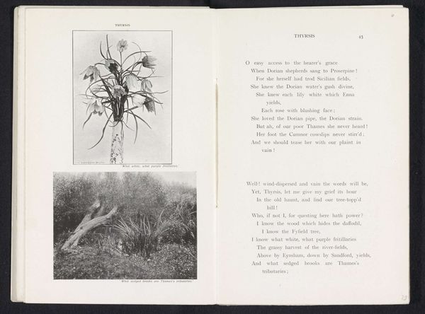 Editor: Here we have Henry W. Taunt’s photograph, “Gezicht op een helling,” which translates to “View on a Slope,” dating from before 1912. It appears to be a print in a book. The strong diagonal line dividing the light and shadow creates such a stark composition. What stands out to you in terms of form and structure? Curator: The most compelling aspect, formally, is precisely that division you noticed. The strong diagonal generates a palpable tension, and it's intensified by the sharp contrast in tonality. Light, airy areas juxtaposed against dense, almost impenetrable darkness. How do you interpret the effect of this stark contrast? Editor: It makes it feel a bit unbalanced, like the dark side is about to swallow the light. The eye is really drawn to that stark line. Curator: Precisely. And observe the texture. The modulation of light across the grass is fairly smooth, a gentle gradation, but compare this with the dense, tangled area on the opposite bank. Do you think the photographer consciously aimed at capturing such varied textures, thus contrasting light and darkness? Editor: That's a great question. Perhaps. The text accompanying the photograph talks of loss and passing time; I think this image might have been selected to emphasize such themes through contrast. Curator: Intriguing. Notice too how the horizon is placed almost precisely at the vertical midpoint. It's not a pleasing asymmetrical arrangement – there's a visual disquiet stemming from the balanced masses, do you perceive this feeling? Editor: Yes, the balanced midpoint almost cancels any feeling of traditional perspective; however, this cancellation gives the image such depth through stark contrast, more emotionally rather than optically. I see now how a formal reading can uncover layers I wouldn’t have noticed initially. Curator: Absolutely. By meticulously analyzing elements, line, shape, value, space, we can build up a more profound visual analysis that yields insights beyond subjective impressions.