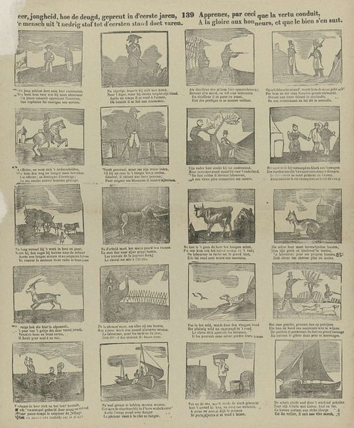 This broadside, created by Antonio Bosch in the late 19th century, presents 48 scenes from Mr. Bidel's Barcelona zoo. It’s printed on a single sheet of paper, likely using a relatively inexpensive printing process such as lithography or wood engraving. The choice of printing reflects its intended purpose: mass communication. The scenes, depicting various animals, are arranged in a grid, suggesting a desire to catalog and disseminate information. Each scene offers a glimpse into the zoo, showcasing exotic creatures and performances. The print medium itself speaks to the rise of mass culture and entertainment during this period. The broadside functioned as a promotional tool, enticing potential visitors to the zoo. But it also speaks to a wider social context of exploration, scientific curiosity, and the commodification of nature. The method of production is crucial to its meaning, blurring the lines between art, advertising, and social documentation.