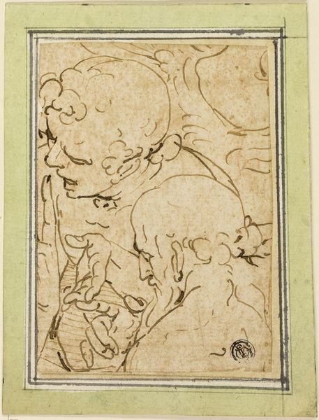 Curator: At first glance, the linear quality lends itself to an almost ethereal lightness. Editor: Indeed. What we have here is "Jacob Blessing Ephraim and Manasseh, the Sons of Joseph" dating from around 1635 to 1640, an ink on paper drawing by Jan Victors. It presents an Old Testament scene, rendered with such simplicity, such confidence in the line itself. Curator: The rapid strokes suggest immediacy. Note the diagonal pull established by the dominant figure to the right – perhaps Jacob himself? – drawing our eyes across the composition. It gives a sense of dramatic unfolding. It would be nice to know how this was received at that time. Editor: Victors worked within the milieu of Rembrandt, which had many historical factors impacting production and reception of art during the Dutch Golden Age, specifically concerning biblical narratives and the social role art had. This style resonated, didn't it? Simple rendering of profound events. What seems unfinished now might’ve then signified direct emotional access, like unvarnished truth. Curator: A powerful thought. Note the two smaller figures at the bottom, presumably Ephraim and Manasseh. How their postures and scale communicate both vulnerability and the implicit importance of the blessing. And Jacob’s hands... so articulately described with few strokes! The tension and anticipation present is beautiful. Editor: Considering the institutional factors, remember that patronage was shifting. The market and audiences demanded clarity of message, hence this simplicity, this 'direct access', allowed viewers, of the time, to engage easily with morality tales reinforcing community and familial bonds amid a changing society. Curator: Your comment really illuminates the artist’s strategy for engagement. It seems as relevant today. Thank you. Editor: My pleasure! Perhaps understanding history, as presented in Victors' beautiful line work, provides continuity with how we now ascribe meaning to familial representation in the contemporary visual world.
