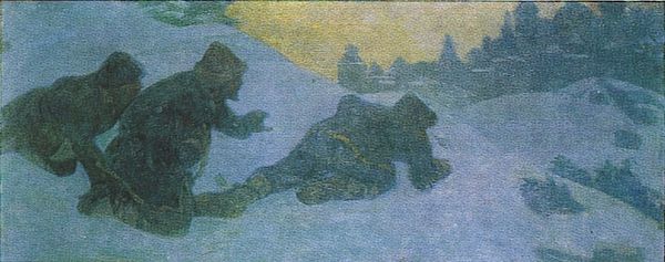 Nikolay Bogdanov-Belsky painted "Children in Winter" with oil, creating a canvas dominated by a palette of whites, grays, and muted browns, evoking a visceral sense of the cold, harsh Russian winter. The rough texture of the brushstrokes adds to the feeling of a bleak, windswept landscape. At the heart of this painting is the formal structure of survival. The composition centers on a huddle of figures, their forms blurred by the snow. Here, the semiotics of color play a crucial role. The dark, earthy tones of the children’s clothing contrast starkly with the enveloping white, symbolizing their struggle against the elements. The artist uses a limited palette to amplify the emotional weight of the scene. Bogdanov-Belsky destabilizes any romantic notion of winter, instead forcing us to confront the raw reality of poverty and resilience. The painting's stark, almost monochromatic palette, serves as a signifier of hardship. The form and structure of the composition are carefully constructed to reflect a larger discourse about survival.