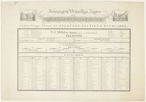 This is a historical and time-reckoning table, conceived by the Maatschappij tot Nut van 't Algemeen, covering the years 1795 to 1821. The organizational structure immediately strikes the eye; a grid divides historical events by country and year. Columns run vertically, delineating geographic regions, while horizontal lines mark the passage of time. This layout isn’t just informational; it’s a form of visual semiotics, mapping the contours of European history onto a rational grid. The use of typography and line work is crucial. Each entry is concisely typeset, prioritizing information density. The lines, thin yet assertive, create a framework that invites comparative readings across nations. The table presents an attempt to distill the complexities of history into manageable, comparable units. The very act of tabulation, in itself, challenges the notion of history as a fluid, narrative construct, and instead proposes an ordered, categorized view of the past.