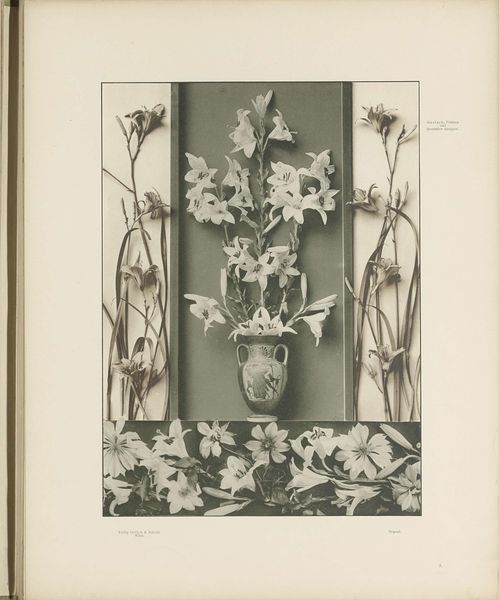 This photograph entitled "Vlak met lissen en tuberozen" by an anonymous artist presents a dense field of irises and tuberoses. The monochromatic palette emphasizes tonal values and textures, drawing our attention to the arrangement of forms. Notice how the composition is structured around the contrast between the light petals and the darker background. The interplay of light and shadow gives depth, and the density of the flowers creates an almost textile-like pattern. This effect might be seen as a pre-occupation with surface and structure. It also undermines the traditional hierarchy between figure and ground. The repetition of floral forms challenges the viewer to look beyond the surface to consider the deeper structures at play. While on the surface it is a botanical study, the photograph encourages us to think about how we structure and categorize visual information. In its very design the image destabilizes fixed meanings, engaging us in a continuous process of interpretation.