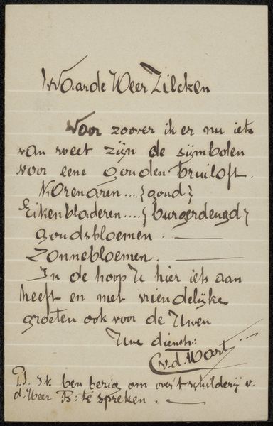 Reinier Willem Petrus de Vries made this design for a letterhead using ink on paper, but I can’t tell you exactly when. What's fascinating here is the evidence of the artist's hand, the way the ink pools and thins, creating a rhythm of dark and light across the page. The texture is crucial; you can almost feel the nib of the pen dragging across the paper, a very physical, deliberate act. Look at the repeated use of the word ‘Cursus’ at the bottom. Each iteration is slightly different, each a testament to the unpredictable nature of the medium and the process. It's as though de Vries is testing the word, seeing how it feels to write it again and again. This connects to a broader idea of art making as a journey, an exploration without a fixed destination. De Vries's contemporary, Jan Toorop, had a similar interest in typography and graphic design. Like Toorop, de Vries seems to embrace the imperfections, allowing them to become part of the artwork's unique character and allowing for various interpretations.