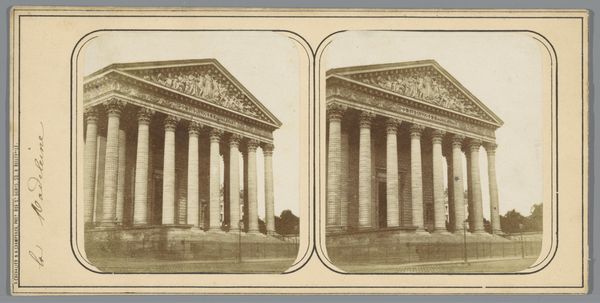Étienne Neurdein made this stereo card photograph of the Palais de Justice in Montpellier, France. The image presents the Palace as a monument to French civic virtue. Photographs like this one were distributed commercially and created a shared visual culture. The Palace is rendered in a neoclassical style, popular at the time for government buildings, which consciously evoked the architecture of ancient Greece and Rome, reminding viewers of the origins of democracy and law. In Neurdein’s image, this is meant to suggest that France, too, is a modern republic that prizes justice. The photograph suggests several questions for the social historian. How does the Palace function as a symbol of state power? How might its visual design influence public perceptions of the legal system? We can study documents such as architectural plans, government records, and newspaper articles to discover more about the building's history.