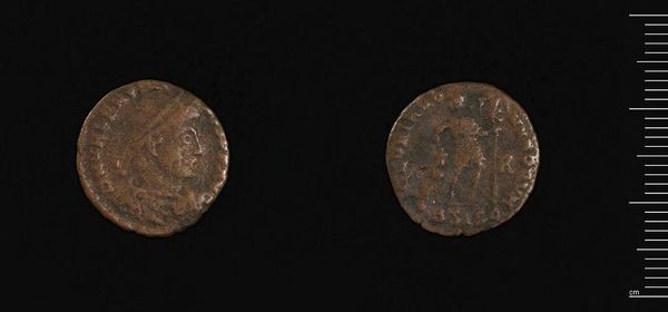 Editor: So, we have a glimpse into the past here with this Coin of Arcadius from Cyzicus. The copper is worn, but still tells a story. What do you see when you look at something like this? Curator: Well, I see time, mostly. I imagine the hands it passed through, the pockets it jingled in. It's like holding a whisper from the late Roman Empire. What stories it could tell, eh? Editor: Definitely! It makes you wonder about the daily life of people back then. What was important? Curator: Exactly! Perhaps this little piece of metal bought someone's bread for the day, or paid a tax. It's a tangible link to a world so different, yet undeniably human. It makes you think. Editor: Absolutely, I learned a lot. Thanks for sharing.