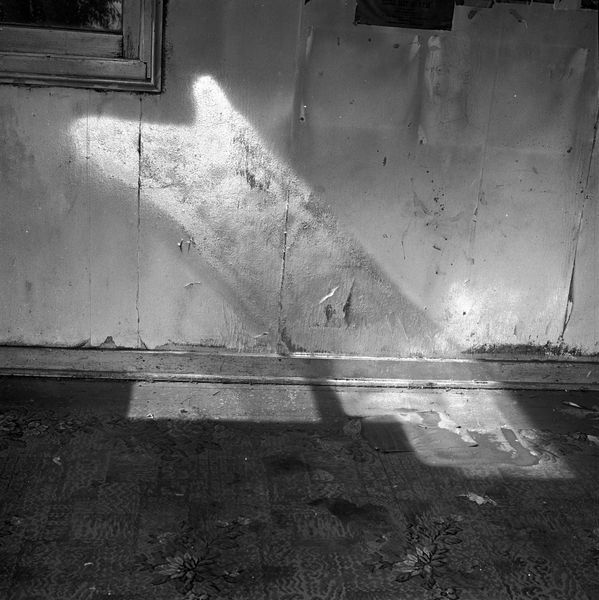 This photograph, taken by Shawn Walker in Harlem, New York, presents a stark yet intriguing visual interplay of light and shadow. Its monochrome palette emphasizes tonal contrasts, drawing our attention to the shapes formed by the shadows of figures and objects on a gridded pavement. This creates a study in textures, from the smooth, reflective wetness to the granular roughness of the concrete. The composition is structured around the dynamic juxtaposition of the organic shadows against the geometric regularity of the tiles. This arrangement destabilizes our perception of space, challenging a fixed reading. The high contrast and stark tonality serve as semiotic markers, evoking a sense of urban realism. The image is both abstract in its interplay of shapes and concrete in its depiction of a specific locale. Ultimately, the photograph’s strength lies in its formal qualities: the strategic use of light, shadow, and form. This transforms an everyday scene into a thought-provoking meditation on presence, absence, and the interplay between the constructed environment and the fleeting moments of life within it. It prompts us to consider the multiple layers of meaning inherent in even the most ordinary settings.