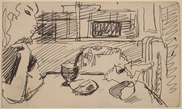 Isaac Israels made this pencil sketch, ‘Xylofoonspelers’, at an unknown date. Israels rendered the scene with graphite on paper, a relatively inexpensive and easily accessible material, enabling quick and immediate capture. The material's inherent qualities—its smoothness and malleability—allow for a range of tonal variations and delicate lines. The artist uses these qualities to imbue the artwork with a sense of immediacy and spontaneity. The texture of the paper also plays a role, adding a subtle graininess to the image that enhances its tactile quality. Israels’s technique of sketching captures a casual domestic scene. The loose, gestural marks create a sense of movement and energy, as if the artist were trying to capture a fleeting moment in time. By focusing on the work's materiality, we can better understand the artist’s approach and the social and cultural context in which it was created. This challenges traditional distinctions between fine art and craft by recognizing the value and significance of everyday materials and processes.