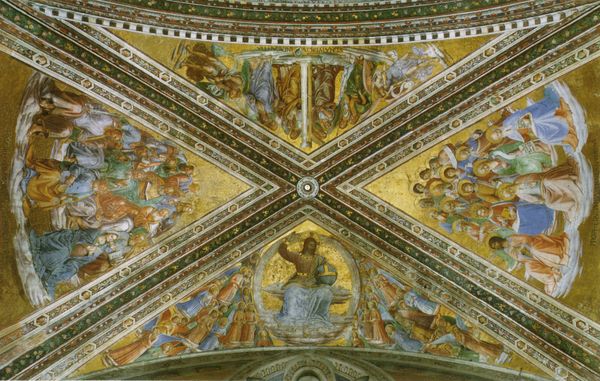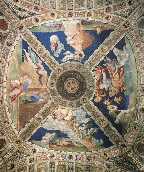 Giotto painted this image of the Ascension of Christ onto a wall using the fresco technique. This meant applying pigment to wet plaster, a method demanding speed and precision. The colors, muted earth tones, and blues, are derived from minerals and organic materials. These were ground and mixed by hand, a laborious process. Giotto and his assistants would have spent considerable time preparing the wall surface and mixing the paints, before even beginning to apply them. The quick-drying nature of fresco required the artist to work in sections, visible in the seams between the areas of the painting. The image has a weightiness, due to the material density of the plaster and pigment. The fresco medium was ideal for large-scale works like this, where permanence and visibility were paramount. Considering the resources and labor invested, it’s clear that the creation of such works were a communal endeavor, reliant on both skilled craftsmanship and patronage. Recognizing these material realities gives us a deeper appreciation for the social context in which the image was created.