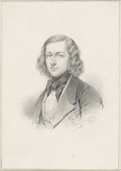 Henry Colton Shumway rendered this portrait of Powell MacRae in graphite on ivory. The portrait miniature reflects the norms of 19th-century American society, where portraiture served to solidify social standing and familial bonds. MacRae’s stern gaze, combined with his formal attire, speaks to a particular construction of masculinity, rooted in the values of seriousness and professionalism. Yet, if we consider the intimate scale of the miniature, we can see a gentler narrative emerging, one of personal connection. How does the act of holding such a small, private image change the way we view the sitter? Is this a tool to possess the sitter’s likeness or a token of affection? This portrait embodies not just the identity of Powell MacRae, but also the complex social dynamics of his time. It invites us to reflect on the layers of identity, representation, and personal connection embedded within a seemingly straightforward image.