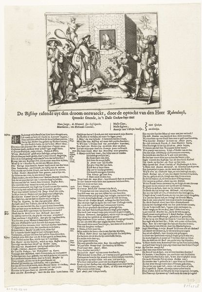 Editor: This print, "Allegory on the political situation in the year 1672," by Romeyn de Hooghe, strikes me as quite dramatic. There's so much happening, with all these figures crowded together. The light and dark contrast really add to a sense of turmoil. How do you interpret this work? Curator: It's fascinating, isn’t it? De Hooghe's print, an engraving, encapsulates the "Rampjaar," the disastrous year of 1672 for the Dutch Republic. See the lion? A traditional symbol of Dutch courage, but here, it's weakened, attacked. What might that suggest to you about the cultural mood? Editor: I guess that means the Dutch Republic wasn't doing so well? It looks like everyone's ganging up on it. Curator: Precisely! Consider the figure being painted into the portrait. Symbols can operate on many levels, so, who could they represent, given the historical context? Think of England and France. Editor: Ah, the foreign powers! They're literally painting the Dutch into a corner. And the angel above must represent divine judgement, then? Curator: Yes, religious elements added another layer of meaning. Think of it: divine judgement suggests both punishment for sins and potential for redemption. How are visual symbols deployed here as warnings or instruments? Editor: It's incredible how much information is packed into this single image. I had no idea there was so much symbolic meaning. Curator: And it serves as a powerful cultural record, illustrating the psychological and political climate of a very specific and turbulent time. I'm glad we looked closely today.