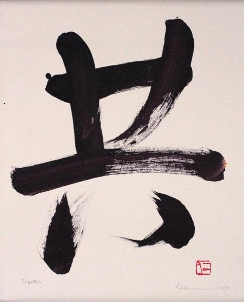 Here we see a work by Keido Fukushima, made with ink on paper. Fukushima's work beautifully demonstrates how the material qualities of ink and paper influence the overall aesthetic of the artwork. The ink, fluid and viscous, allows for a range of tonal variations and gestural marks. Applied with a brush, it creates strokes that vary in thickness and intensity. The texture of the paper also plays a crucial role, as its absorbency affects how the ink spreads and dries, creating subtle nuances in the lines and shapes. This piece reflects the rich tradition of East Asian calligraphy, where the act of writing is not just about conveying meaning but also about expressing the artist's spirit and energy. The tools and techniques are simple, but the level of skill and discipline required to master them is considerable. Such works invite us to look beyond the symbolic meaning and appreciate the deep connection between materials, process, and cultural expression. They blur the lines between craft and fine art, emphasizing the importance of skilled making.