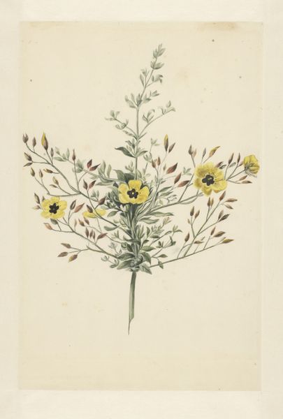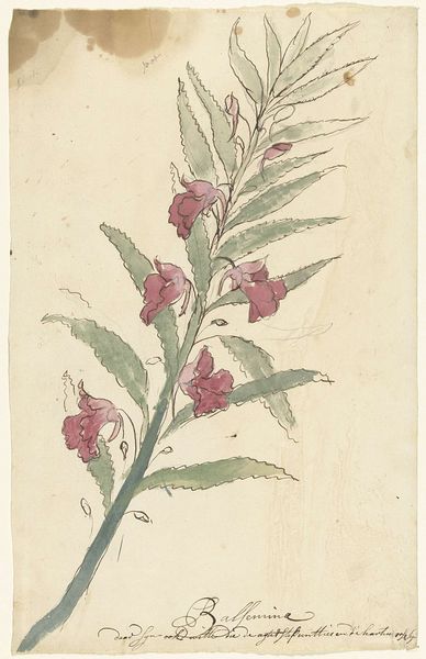 Editor: So, this lovely botanical drawing is called "Bloeiende frederiksbloem (Asclepias curassavica)," created sometime between 1668 and 1729 by Laurens Vincentsz. van der Vinne. It's a watercolor drawing currently housed in the Rijksmuseum. It's delicate but also incredibly precise. What structural elements jump out at you in this piece? Curator: Primarily, the rigorous adherence to mimetic representation arrests my attention. The composition reveals an almost scientific rendering through calculated compositional structuring and delicate gradations of color; observe how Van der Vinne utilizes precise linear configurations to delineate the boundaries of each leaf and petal, affording it a distinct formal identity within the totality of the pictorial space. Do you observe how these elements operate independently, but harmonize via careful arrangement of space? Editor: Yes, the way the plant fills the frame is striking. The precision in each element stands out. The rendering feels so careful! So much deliberate application of lines and pigments. Are there any aspects you find less successful? Curator: I find the absence of dynamism, typical of Dutch Golden Age botanical illustrations, noteworthy, if not entirely detrimental. One could argue that a more robust engagement with asymmetry might have enriched its aesthetic qualities, thereby intensifying the phenomenological impact on the observer. The symmetrical presentation seems too…stilted. It limits potential avenues for engaging with complex visual dialogues. Editor: That's a perspective I hadn't considered. It makes me rethink my initial reaction of it simply being precise. I see what you mean. Curator: Formal considerations, as we have seen, yield insightful possibilities. The analysis of these, albeit small, artistic and visual decisions gives voice to what otherwise lies unspoken within the confines of aesthetic appreciation. Editor: This has been insightful; it highlights the significance of close, sustained visual inspection to discern complex artistic strategies. Curator: Agreed, art historical study is about structured inquiry, not immediate judgements.