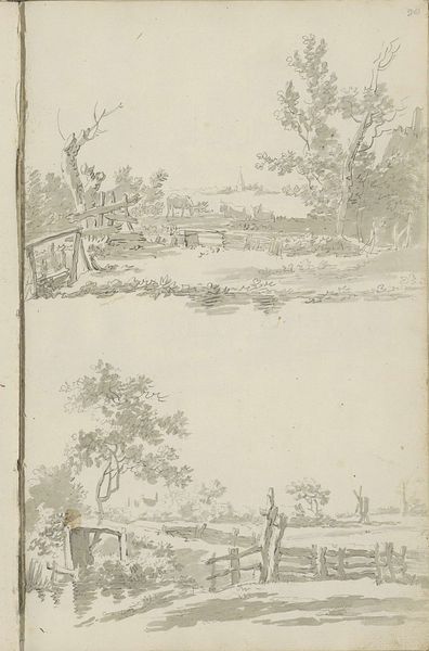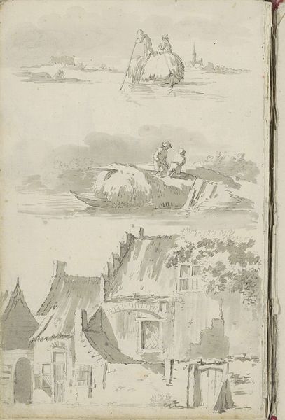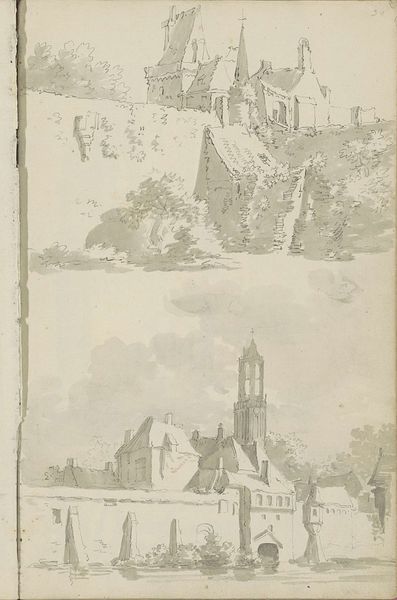Barend Hendrik Thier rendered this city view in ink, capturing a moment of Dutch urban life. The artist, born in the mid-18th century, lived during a time when the Dutch Republic was navigating economic shifts and evolving social structures, influences that seeped into its art. This drawing, with its serene waterside setting, reflects a period where the identity of Dutch cities was closely tied to their waterways. The detailed rendering of buildings and the subtle use of light and shadow invites us to consider the domestic lives and labor that characterized these communities. There's a quiet stillness in Thier’s work, a gentleness that might evoke a sense of nostalgia. Yet, it also hints at the socio-economic complexities of the era, where the burgeoning merchant class shaped the urban landscape. The detailed architecture and careful depiction of daily life serve as quiet reminders of the human stories embedded within these spaces.