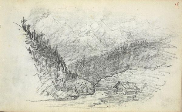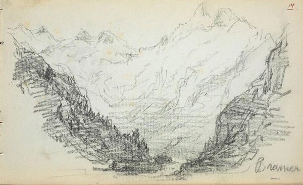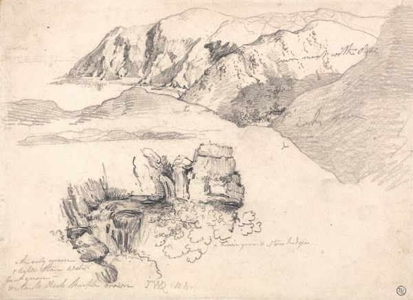 Curator: Looking at this pencil sketch, John Singer Sargent captures a Mountain Landscape in just 10.3 x 17.2 cm. The work is held at the Harvard Art Museums. Editor: It feels so immediate and raw. The mountains seem to loom with a kind of sublime power, but also fragility, rendered in these delicate lines. Curator: Absolutely. The materiality speaks volumes; a simple pencil on paper creating this grand vista. I wonder about the accessibility of materials, and the economics of art production during his time. Editor: I agree. It speaks to Sargent's positionality as an artist moving through elite social circles, but also highlights his engagement with landscape and nature—how might we interpret this landscape through the lens of colonialism and land use? Curator: That’s interesting. Consider the labor involved in extracting the graphite for the pencil itself and the paper it’s drawn on. Editor: It's a powerful reminder to look beyond the surface and consider the complex narratives embedded within even the simplest sketches. Curator: Indeed, it’s a glimpse into the artist's process and the global network that makes even a quick sketch possible. Editor: A sketch that prompts us to consider the intersection of art, environment, and social justice.