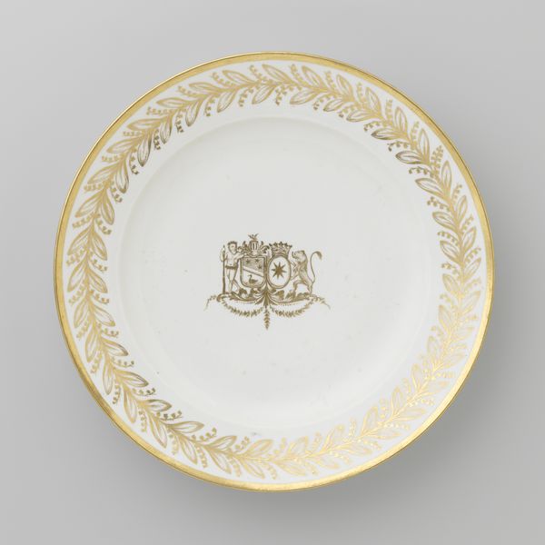 This elegant dish, crafted by E. Blancheron, features the conjoined coat of arms of Hendrik Peter Godfried Quack and Isabella Gertraud von Carnap. In the historical context of heraldry, coats of arms were integral to signifying lineage, status, and alliance. The fusion of two family crests on one object speaks volumes about marriage as a social and economic contract. The aesthetic choices—gilded laurel leaves, delicate porcelain—underscore a sense of wealth and refinement, reflecting the values of the elite. Yet, the piece invites reflection on the complex dance of power, gender, and social expectations embedded in such unions. The dish becomes a symbol of personal narratives intertwined with broader societal structures, echoing how individuals navigate identity within their own time.