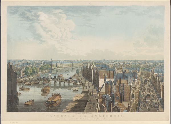 Curator: Let's consider "Dresden from the Banks of the Elbe River," a watercolor and ink drawing rendered in 1782 by Adrian Zingg. What strikes you immediately? Editor: It feels so tranquil, like stepping back into a hazy dream. I'm really drawn to the softness, the light just dances on the water and those dreamy spires. It almost doesn't seem real, you know? Curator: That resonates. The depiction offers an idealized vision characteristic of both Neoclassicism and early Romanticism, movements in dialogue at the time. There’s a tension, actually, between Enlightenment ideals of order, seen in the architecture, and this budding Romantic yearning for the picturesque. Editor: Picturesque, that's the word! But it’s not just pretty, is it? There’s all this activity on the riverbank. People working, loading things… what's going on there? Curator: Precisely. Zingg situates everyday labor—people working with timber, managing boats—within the grand panorama of Dresden. This reminds the viewer that cities, for all their architectural majesty, are built on the backs of a working populace. We might consider questions of class and labor as integral to the viewing experience. Editor: Ah, I see it. It's not just some pretty postcard, it’s a whole world contained. Makes you wonder about the lives of those folks down by the river, doesn’t it? What their days were like, what they believed in. Curator: Indeed. This artwork invites that kind of probing. It’s an opening, an invitation to think critically about how we represent history, urban space, and even whose stories are told in these vistas. Editor: I will leave contemplating the real Dresden, and all the stories it holds—both the grandeur and the grit! I can't look at any landscape the same way. Curator: A worthy takeaway indeed, this piece compels me to continue to excavate, question, and enrich our understanding of history, urban representation, and power dynamics of time.