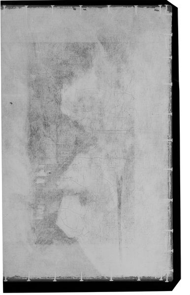 Curator: Here we have an X-radiograph of "Portrait of a Girl" by George Romney, housed here at the Harvard Art Museums. Editor: My first thought? It's like seeing a ghost, a hidden face peering through layers of time and art. Curator: Indeed. The X-ray reveals the underpainting, the artist's initial approach, the subtle adjustments made beneath the surface, like an archeological dig into the artist's process. Editor: It's a reminder that every finished piece has a history, a buried narrative. You know, it's like our memories, layered and sometimes obscured. Curator: Very much so. It speaks to the evolving nature of creation, the pentimenti that reveal the artist's hand and choices. Editor: It makes you think about what's unseen, what's hidden, what stories are beneath the surface of everything. A rather haunting beauty. Curator: A technical analysis that resonates with the deepest layers of artistic expression. Editor: Definitely, it's given me a new perspective for sure!