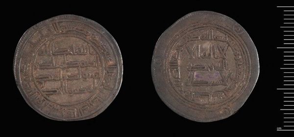Editor: This is a Dirham of Al-Walid I from Wasit. It's so small, yet it seems to hold a lot of history. What do you see in this piece? Curator: This coin, beyond its monetary value, embodies cultural memory. Notice the Arabic calligraphy. It's not mere script, but a potent symbol of faith and governance. How does the consistent use of this visual language across a vast empire affect our understanding of that period? Editor: That's fascinating! It's like a visual anchor. I hadn't considered that. Curator: Exactly. This dirham connects us to a complex network of beliefs and administrative structures. It prompts us to question how symbols shape collective identity. It really invites us to think about cultural continuity. Editor: I'm starting to see how something so small can tell such a big story. Curator: Indeed. Every mark carries cultural weight, resonating across time.