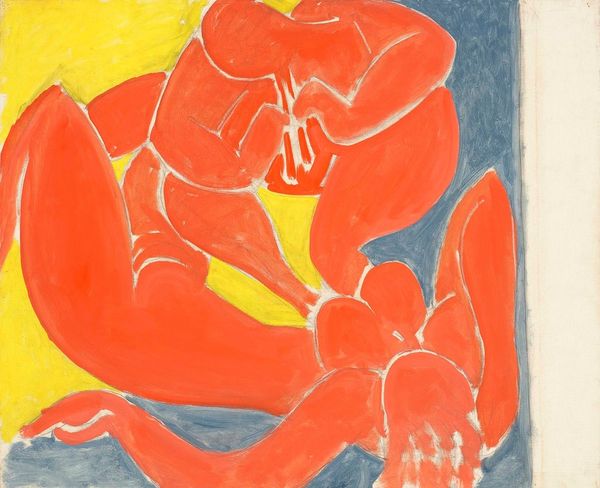 Editor: This is Henry Lyman Saÿen's "Calligraphic #2 Woman on Chair," created sometime between 1914 and 1918, done in watercolor. The colours are quite striking and the composition…fragmented. What do you see in this piece? Curator: I see a work deeply engaged with the dismantling of traditional representation. Painted during a period of intense social upheaval, we have to ask ourselves, how does this deconstruction mirror broader challenges to societal norms, especially those impacting women? Editor: So you’re saying the abstract forms have social implications? Curator: Absolutely. Consider the Fauvist influence: the bold colors, divorced from realism, scream liberation from academic constraint. Now think about how women were simultaneously fighting for suffrage and greater autonomy. Isn't this distorted form a visual analogue for the ways women's bodies and identities were being reimagined, reclaimed? Where do you see signs of that potential reclaiming? Editor: I guess… the figure is central. And there is something assertive about the blocky, bold colours he uses for the skirt and arms. It almost feels confrontational. Curator: Precisely. The vibrant colors push back against the objectification that characterized so much of the traditional portraiture of women. This painting is a testament to the era’s radical rethinking of identity and representation. How does that understanding change your initial response to the work? Editor: It makes me think about the agency of the sitter. Maybe she isn't just a model, but a participant in this artistic revolution. Curator: Exactly. And that shift in perspective is crucial to understanding the piece within its historical and social context. Editor: Thanks! I definitely look at it differently now, with an eye toward the artist commenting on shifting identities. Curator: Indeed, viewing it as a Fauvist statement on female empowerment helps connect the art to crucial historical narratives.