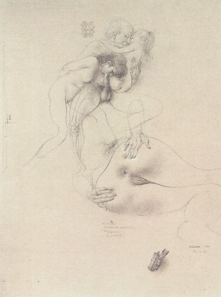 Editor: This is "Male Torso and Study for Portrait of a Woman with Flowers," a graphite drawing by Vincent van Gogh from 1887, currently residing at the Van Gogh Museum. The sketches are fragmented, and I am curious about the seemingly disparate images contained within a single frame. What formal qualities strike you when viewing this drawing? Curator: Immediately, the juxtaposition of figural studies demands our attention. Consider the interplay between the shaded density of the male torso and the comparatively linear and airy depiction of the female figure above. There is an unmistakable tension arising from this contrast in both texture and form. Editor: So, the materiality, the gradations from dark to light in the rendering of each form, defines the dichotomy for you? Curator: Precisely. The vigorous application of graphite to delineate the male torso, creating a sense of volume and weight, is intentionally different from the rapid, almost ethereal lines suggesting the female portrait. Ask yourself: how does the artist manipulate line and shadow to generate discrete spatial planes within the composition? This articulation invites us to unpack relationships across depicted objects. Editor: It does feel as if two distinct artistic impulses occupy the same picture plane. How does this impact the overall composition, and should it invite semiotic interrogation? Curator: The deliberate opposition in the formal presentation suggests a deliberate intent. Van Gogh’s attention to texture—the interplay between heavy shading and sparse outlines—creates not just a visual tension but activates critical interpretations. The fragmented narrative compels deeper contemplation as to what Van Gogh may suggest of masculine presence versus feminine ideal. Editor: This has helped me consider how seemingly disjointed images coalesce through material and formal treatment, leading to broader meaning. Curator: Indeed. By closely analyzing line, texture, and contrast, we move beyond superficial observation and approach a more nuanced understanding of the work's complexity.