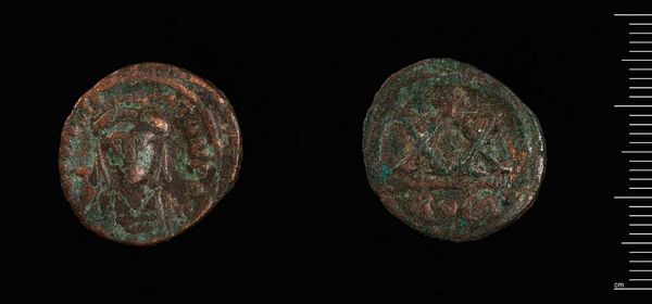 Editor: This is the Tetradrachm of Alexandria under Salonina, from the Harvard Art Museums. What strikes me is the worn texture of the metal itself, a testament to time. How do you interpret this work purely through its visual components? Curator: Its circular form, immediately suggestive of unity and cyclical time, is disrupted by the material degradation. The patination introduces a chromatic complexity—verdigris against the original metallic hue. How does this contrast affect your understanding? Editor: It makes me think about decay and the passage of power. That's really interesting. Thanks for your help! Curator: Indeed. Focusing on these formal qualities allows us to consider temporality and transformation inherent in the artifact.