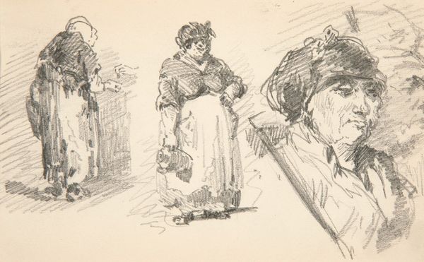 This 'Sheet of Sketches' was created by Eugène Delacroix and now resides at the Art Institute of Chicago. This sheet is a collection of various studies, each delineated by a series of fine, etched lines that capture light and form. The composition is dynamic, juxtaposing figures, architectural details, and portraits, each existing in its own spatial plane yet unified by the artist's distinct hand. The lack of a singular focal point invites the eye to wander, engaging with each sketch independently while also considering their collective arrangement. Delacroix's use of etching, a medium that necessitates precision, is striking. The lines are not merely descriptive; they are expressive, creating a sense of movement and depth. Notice how the artist uses hatching and cross-hatching to build volume and shadow, giving each figure a tangible presence. This technique reflects a deep understanding of classical principles, combined with a Romantic sensibility towards emotion and drama. These sketches provide insight into Delacroix’s working methods and demonstrate a commitment to the materiality of etching as a means to convey complex ideas. The artwork challenges the traditional hierarchy between the finished work and preparatory sketch.