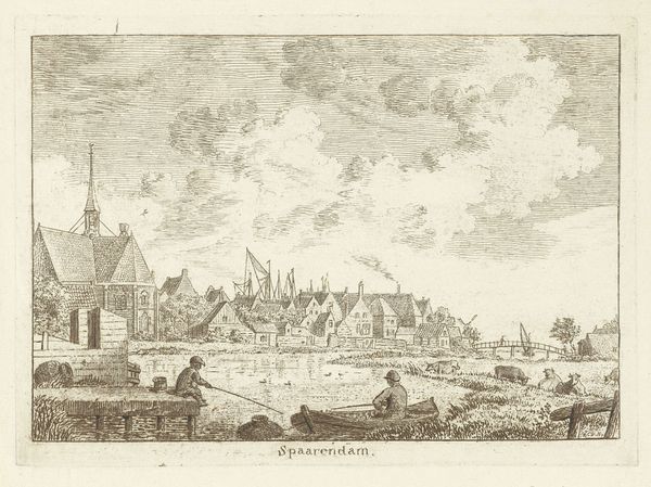 Paulus van Liender created this print of the harbor of Amersfoort using etching, a technique that democratized image production in the 18th century. This seemingly simple landscape speaks volumes about Dutch identity during the period known as the Dutch Golden Age. The scene reflects a society that prized commerce, navigation, and technological innovation, symbolized by the windmill which dwarfs the nearby grazing cattle. But consider the absence: where are the markers of the Dutch colonial empire? Where are the ships that sailed to Indonesia, South Africa, or Suriname, or the people who were subjugated by the Dutch East India Company? This highly cultivated landscape thus reflects not only pride, but a cultivated ignorance. What we are seeing is a purposeful construction of Dutch identity, an attempt to forget its connection to the oppression of others. While serenely beautiful, the print serves as a potent reminder that every landscape is, in essence, a carefully curated and deeply ideological view.