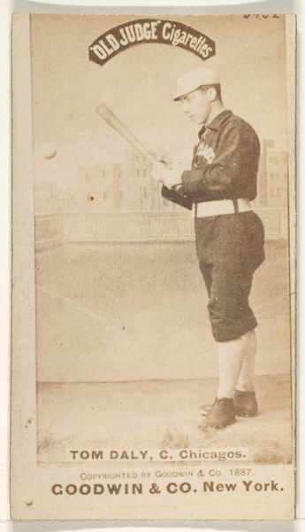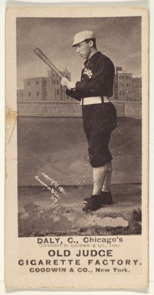 This is a baseball card of James Newton "Jesse" Duryea, a pitcher for Cincinnati, created by Goodwin & Company as part of the Old Judge Cigarettes series. These cards emerged during a period of intense cultural change in the late 19th century, a time marked by industrialization, urbanization, and new forms of mass media and consumerism. The card is more than a portrait of an athlete; it's an artifact of the era's burgeoning celebrity culture and the commercialization of leisure. Duryea, captured in the midst of his pitching motion, embodies the evolving ideal of the American sporting hero. Yet, it's impossible to ignore the context of this image as a promotional item for cigarettes. The history of baseball is also a history of racial segregation, with Black players systemically excluded from the major leagues. These cards, circulating widely, played a role in shaping and reinforcing these exclusionary norms. Consider the emotional resonance these cards held for fans, offering a tangible connection to their heroes amidst a rapidly changing world.