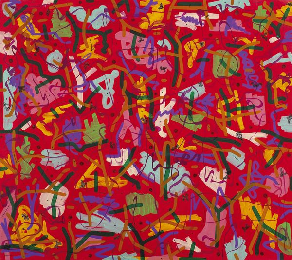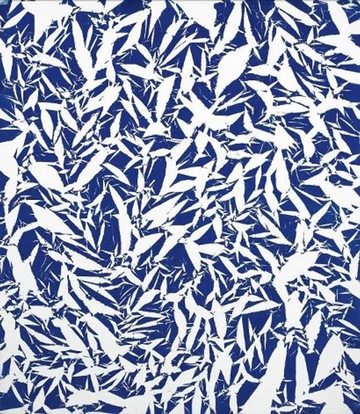 Editor: Here we have "Blanc" by Simon Hantai, created in 1974 using acrylic on paper. It feels like looking through a shattered kaleidoscope, all these little fragments of color against a white background. What stands out to you? Curator: Immediately, the tension between chaos and order is striking. The vibrant, almost joyful colours are scattered, yes, but there’s an underlying sense of structure, like stained glass after an explosion. Think about the psychological impact: do these fractured forms evoke a sense of fragmentation or rebirth? Editor: Rebirth is interesting! I hadn’t thought of that. It did strike me as pretty chaotic at first. So, what is your interpretation of the individual colors and shapes? Curator: Each tiny shape, with its own unique hue, might represent an individual experience, memory, or even a lost object. The colors themselves are potent symbols, carrying cultural and emotional weight. For example, blues often represent tranquility and introspection, while reds evoke passion or even danger. Are they bleeding into one another or standing on their own? Editor: I think they have some clear boundaries around most of them. Some shapes slightly overlap, but that's it. What about the negative space created between them? It's a huge element in this piece. Curator: Exactly! The negative space, the "blanc" itself, is not empty, it becomes a field of possibilities. A canvas for our own projections and interpretations. What emotions do you associate with "whiteness" itself? Editor: Well, a blank slate usually seems like an open road to new beginnings and experiences. Curator: Precisely! Hantai challenges us to fill that slate, that space, with our own stories, anxieties, and hopes. Seeing this work has changed how I approach abstract art! Editor: It's fascinating how one image can contain so many layers of meaning, thanks to color and symbolism.