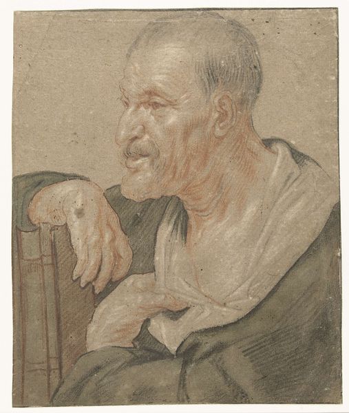 Frans van Mieris the Younger rendered this portrait of Willem van Mieris in delicate pencil strokes. The subject's hands, particularly the act of holding a book, offer a rich field for our interpretation. The book, a long-standing symbol of knowledge, wisdom, and learning, appears here not merely as an attribute, but as an extension of the self. We see echoes of this motif in countless Renaissance portraits, where books signify the sitter's erudition and cultural standing. Think of Jan van Eyck’s "Portrait of a Man with a Chaperon," where the book suggests intellectual depth. Consider, too, the gesture of holding, the hands gently clasping the book. This is not a casual grasp, but a protective, almost reverential hold. It brings to mind images of saints and scholars safeguarding sacred texts, preserving knowledge through the ages. The cyclical progression of this symbol has resurfaced, evolved, and taken on new meanings in different historical contexts.