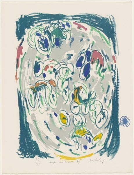 Pierre Alechinsky’s print titled 'Chance and Its Mother' seems to relish the happy accidents of artmaking, as though the image was coaxed into existence rather than forced. The swirling lines that define the figures suggest a process led by intuition and a willingness to embrace the unexpected. See how the green and brown inks create a sense of depth and shadow, allowing the forms to emerge from the background, like memories surfacing from the subconscious. Focus on that orange figure at the bottom; it is almost cartoonish in its simplicity, yet it holds its own against the more complex forms above. The piece reminds me of the work of Joan Miró, who similarly embraced chance and spontaneity in his art. Both artists seem to suggest that art is an ongoing conversation, a playful exchange of ideas across time. And maybe that art embraces ambiguity, inviting us to bring our own interpretations to the table.