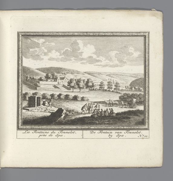 Isidore-Stanislas Helman created this print, "Tchao-Hoei ontvangt inwoners van een nabijgelegen plaats in zijn legerkamp", using etching. Notice how the circular composition of the encampment draws your eye into the crowded, detailed scene. The meticulous lines, etched with precision, capture a moment teeming with people and tents. A flattened perspective gives us an aerial view, reminiscent of a map, yet densely populated with human activity. The circle functions as both an enclosure and a focal point. The symmetrical structure suggests a controlled, organized space. This geometric form can be interpreted as a symbol of power and order. It's a visual declaration of dominance, framing the inhabitants within a defined boundary. The print doesn't just depict a scene, but constructs a visual language of authority, inviting us to decode the semiotics of space and control embedded in the composition.