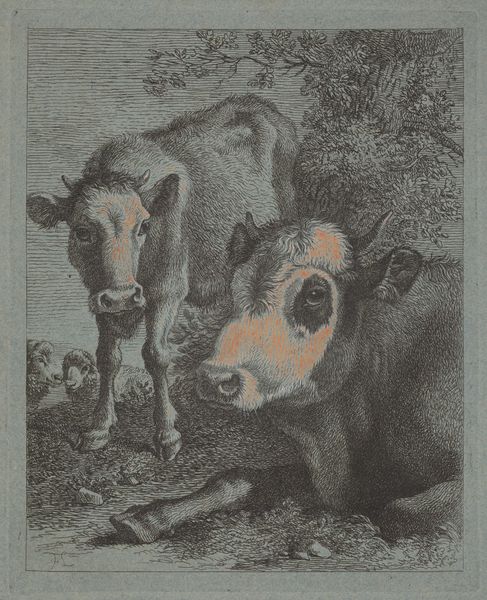 Curator: I'm immediately struck by the tranquility in Francesco Londonio's "Horse, Ram, Goat with Kid; In the Distance a Shepherd with Flock," created in 1759. It feels very grounded. Editor: Grounded, yes, but also charged with the weight of pastoral life. Londonio’s choice of depicting farm animals resonates deeply with traditions surrounding man and animal within society. He elevates genre painting here, I think. Curator: How so? While clearly not history painting in the academic sense, these creatures were central to agrarian societies. Animal imagery serves as metonyms for economic relations; each animal has an implicit financial value within the local community, as well as reflecting societal divisions during this time. The careful arrangement of animals perhaps speaks to an imposed order, but that is an idealized, romantic perspective. Editor: I agree that idealization is a factor here, and if we examine this from the iconographic and symbolic position, these creatures are associated with abundance. A ram for prosperity, and so on, harkening back to traditions and even pagan roots associated with farming and growth, of sustenance and care. The colours, the muted reds and ochres speak to this connection with the earth, this symbolism associated with natural goodness. It's not just an order imposed; it reflects continuity of life through natural order. Curator: I can see the continuity, however, from the perspective of class, animals such as those depicted symbolize wealth and power, reinforcing social stratifications. While aesthetically pleasing and evocative, Londonio’s work unintentionally becomes emblematic of inequality in 18th-century society. Editor: But what is more fundamental? Wealth is transient, tied to society. The very nature of family dynamics are represented through that goat and her kid. This image, with its quiet natural symbols and earthy tones, it expresses a sense of enduring family dynamics, where each component supports the others for continuous development. These themes of protection, care, love are universal through humanity. Curator: Yes, it is fascinating to see how one work of art can evoke so many layered thoughts regarding history, politics, identity, even maternal relationships, all wrapped up within Londonio’s serene sketch. Editor: I suppose what is lovely about symbols is that they resonate personally as much as collectively; that quiet power should never be forgotten.