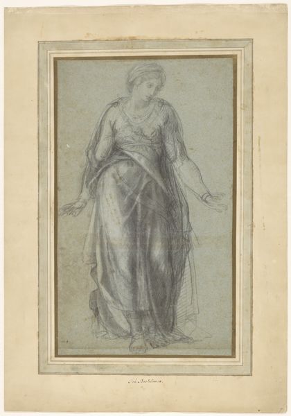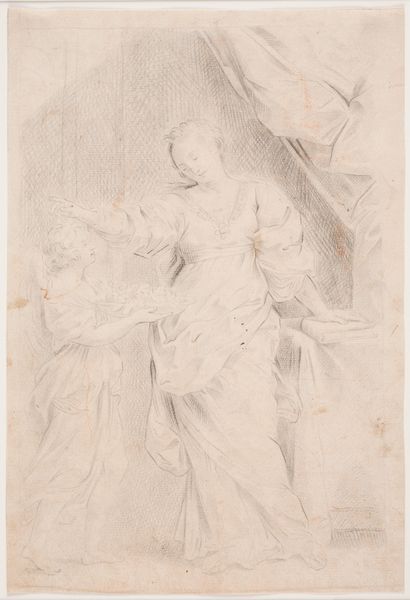 Editor: Here we have Izaak Jansz. de Wit’s pencil drawing, "Kracht (Fortitudo) en Azië," created sometime between 1754 and 1809. The figures have a somber and almost allegorical quality. What do you see in this piece, in terms of its historical context? Curator: This drawing presents a fascinating intersection of power and representation during a period of intense colonial expansion. We see “Fortitudo,” or Strength, likely personified as a European figure, towering over "Azië," or Asia. But look at her gaze – averted, perhaps weighed down by the implications of power? What does it mean to depict "strength" in this way, especially considering the context of colonial trade and exploitation? Editor: It’s like the drawing acknowledges the cost of this power dynamic. I hadn’t considered that angle. Curator: Exactly. Consider the time this was made – the Dutch East India Company was at its peak, extracting immense wealth from Asia, but also engaging in violent conflicts. Is this drawing celebrating strength, or is it a critique of the forces at play? How does the contrast between the confident "Fortitudo" and the downcast "Azië" complicate our understanding of Dutch power in Asia? Editor: I see what you mean; the artist is using those poses and expressions to speak to more complex political ideas than just the glory of the Empire. I'm thinking of the "history-painting" tag – so how does it fit that genre? Curator: The ‘history-painting’ theme opens an opportunity for political commentary through a more subtle use of allegory. Do the soft lines of the drawing mitigate or amplify its statement of domination? Editor: Now, when I look at it, it seems more like a prompt for us to investigate and unpack those historical narratives. I thought it was just a simple sketch at first. Curator: That's the power of engaging with art from an intersectional perspective; it challenges us to look beyond the surface and consider the underlying narratives shaping our world.