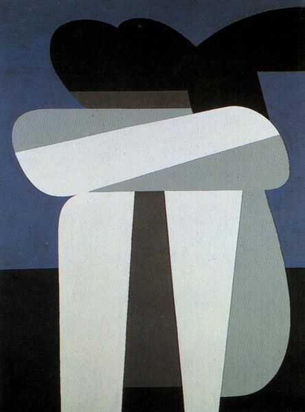 Yiannis Moralis made this painting, titled 'Erotic,' with oil on canvas. The material itself gives us a great deal of information, and the way Moralis has handled it is key to understanding the work. Oil paint has a viscosity that allows for seamless blending, and this lends itself to soft, abstracted shapes. We can see Moralis’s confident brushwork in how the colors softly meet. The limited palette and smooth surface reflect a modernist aesthetic, aligning the painting with industrial production through their clean, pared-down aesthetic. Though the title suggests intimacy, the execution is cool, even distant. This tension arises from the labor involved, or rather, artfully concealed: the hours of careful mixing, layering, and blending, all resolved into a composition that appears effortless. The painting invites us to think about how materials, making, and context intertwine to give an artwork its full meaning.