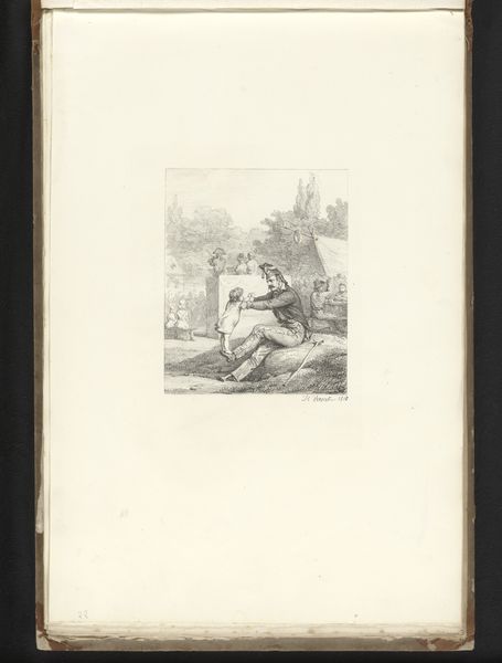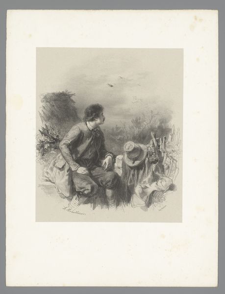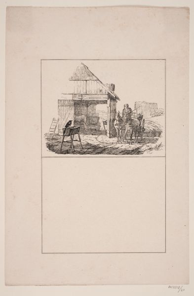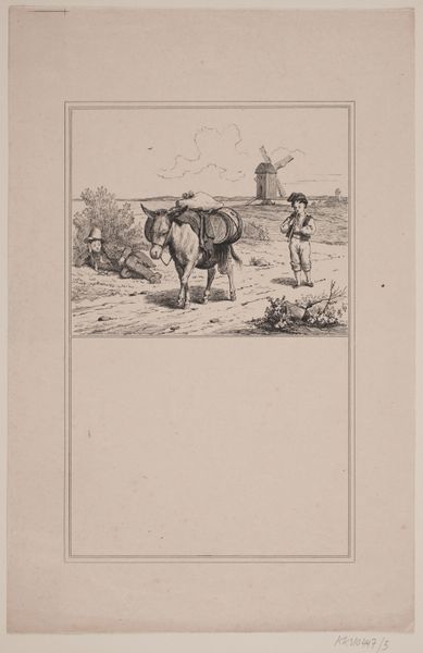 Editor: This is "Aftenstunden," created by Adolph Kittendorff in 1845, using lithography and etching techniques. The composition has a calming, almost nostalgic mood; I wonder how it speaks to its original audience. What can you tell us about this work in its historical context? Curator: It’s a fascinating print to consider within the framework of 19th-century Danish society. Consider the rise of national romanticism at the time. Images of rural life and local landscapes served a purpose. Can you guess what that purpose was? Editor: I suppose, with the growing sense of nationalism, art like this could foster a sense of collective identity? To showcase and idealize Danish life? Curator: Exactly! The rise of nationalism coincided with social changes in Denmark. The burgeoning middle class had more access to art. So, what did genre paintings depicting everyday scenes represent to them? Editor: Maybe a way to see and understand themselves, or perhaps an idealized version of that self. A reflection, almost? Curator: Precisely! It promoted an idealized view of rural life as the core of Danish identity. Artists like Kittendorff contributed to a visual culture celebrating national values, and we should be aware of what may be left unsaid in that idealization. Are the realities of peasant life fully captured, for instance? Editor: It’s amazing how art can be so deeply connected to cultural movements. It makes you question what kind of statement the artist intended to make, and if their audience received the intended message. I’ll definitely be keeping an eye out for such cultural details going forward! Curator: Indeed. Studying art in this manner provides critical insight to both the artist, the context in which they worked, and the modern viewer’s role in continuing the artwork's life.
