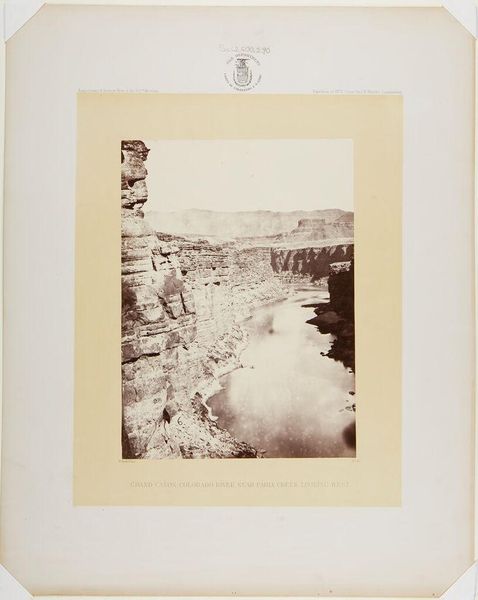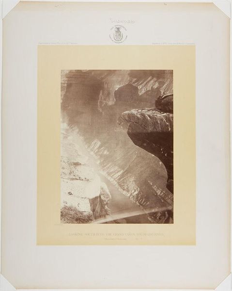 Curator: This albumen silver print captures a view of the Cañon of Kanab Wash, Colorado River, looking south. The photographer, William Bell, born in 1831, masterfully captures the canyon’s depth and scale. Editor: It feels like peering into the earth’s raw, exposed soul. The light and shadow do a dance, almost a primal scream, no? Curator: Indeed. The composition is striking, with a strong diagonal created by the canyon walls, guiding the eye upward. The light functions almost as a structural element. Editor: And there's something about the texture – it gives the rocks a life of their own, a narrative etched in stone. Curator: Precisely, the materiality, the tones, create a sense of monumentality. The photograph itself becomes a document, almost geological. Editor: You know, I look at this, and I feel… small, but also connected. It's a humbling, breathtaking vista. Curator: I concur. It provides us with an important lens to consider our place within the grand scheme. Editor: A powerful testament to the enduring beauty of the natural world, wouldn't you agree?