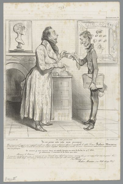 This lithograph, "A Regular Out and Out'er," made by Mssrs. Fores, captures a scene ripe with political satire through carefully chosen symbols. The corpulent figure, a clear signifier of wealth and power, gives instructions to a ghostly figure standing in a doorway marked 'Treasury.' Note how the gentleman's dismissive gesture is eerily reminiscent of Pontius Pilate washing his hands, absolving himself of responsibility. The ghostly figure, meek and subservient, is a specter of the Treasury. The meaning of this symbol has an almost cyclical journey. Originally a symbol of Roman authority, it reappears as a way to mock those in power. By the 18th century, it resurfaces as a symbol of governmental corruption. Each iteration reflects a collective anxiety about authority. Isn't it a potent reminder of how symbols evolve, yet their emotional core remains disturbingly constant?