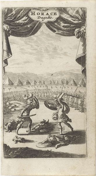 This small print of two fighting knights on horseback was made by an anonymous artist. The image gives us a glimpse into the cultural values of its time. In the foreground, two knights engage in combat, embodying ideals of chivalry and martial prowess associated with the aristocracy. Yet, this scene unfolds against the backdrop of a larger battle, hinting at broader social and political tensions. Prints like this were often made as part of larger series. They circulated widely, shaping perceptions of power, gender, and class. Consider how the portrayal of knights might have influenced notions of masculinity and leadership within elite circles. How might such images have resonated with viewers from different social strata? These prints played a role in shaping the collective imagination. They invite us to reflect on the stories we tell ourselves about heroism, conflict, and social order.