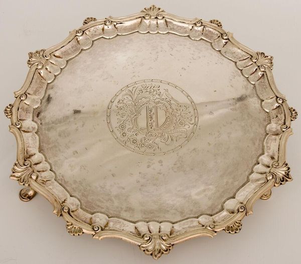 This silver salver, crafted by Richard Rugg, presents us with a fascinating interplay of symbols. At its heart lies a coat of arms, encircled by what seems to be a laurel wreath, evoking classical notions of victory and prestige. The heraldic imagery, with its lion crest, is a visual echo of lineage and power, designed to resonate with ancestral pride. We have seen such symbols evolve from ancient totems to medieval heraldry, each iteration layering new meanings onto the old. Think of the lion, once a primal emblem of strength, now tamed, stylized, and made to represent the very essence of familial honor. The faces around the rim remind us of the ancient Greek masks representing tragedy and comedy. These could evoke a range of emotions from sorrow to joy. It's as if the salver itself is a stage upon which life's dramas are played out, with each face a witness to the ebb and flow of human experience. This timeless symbol reflects the cyclical nature of history, echoing through generations.